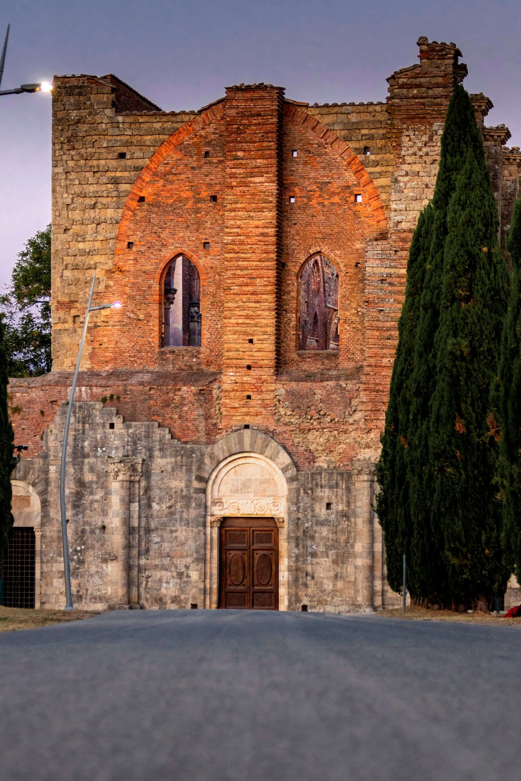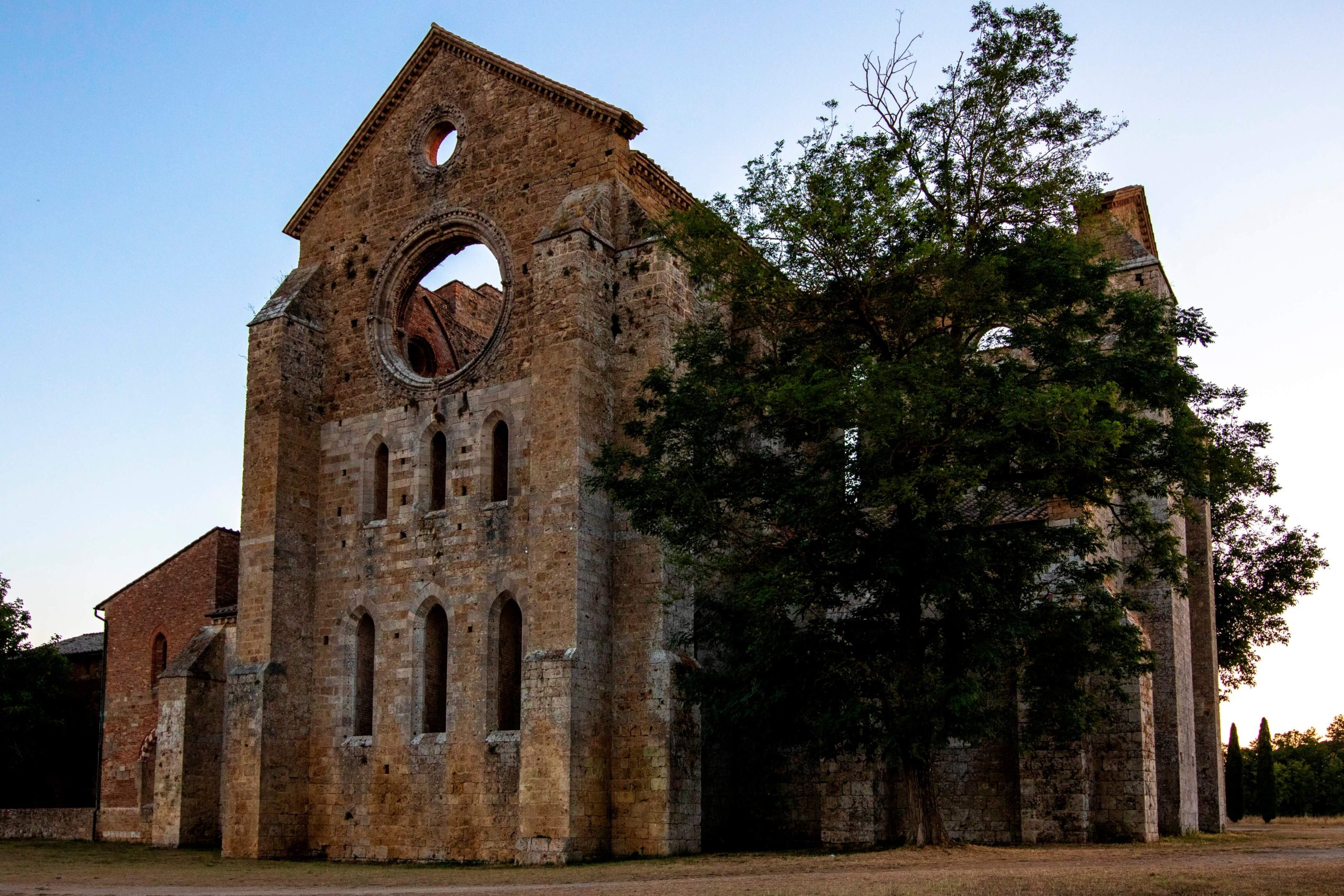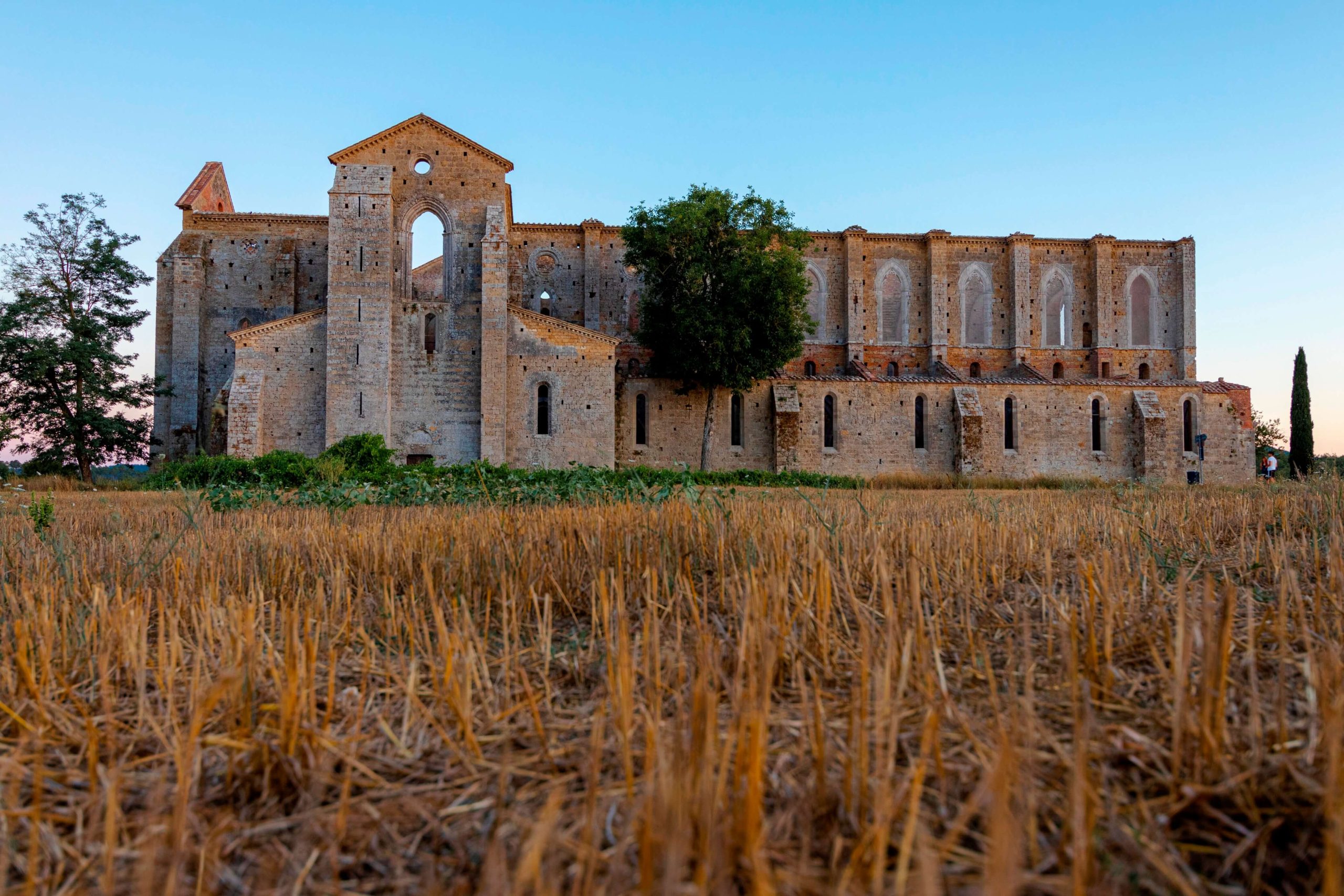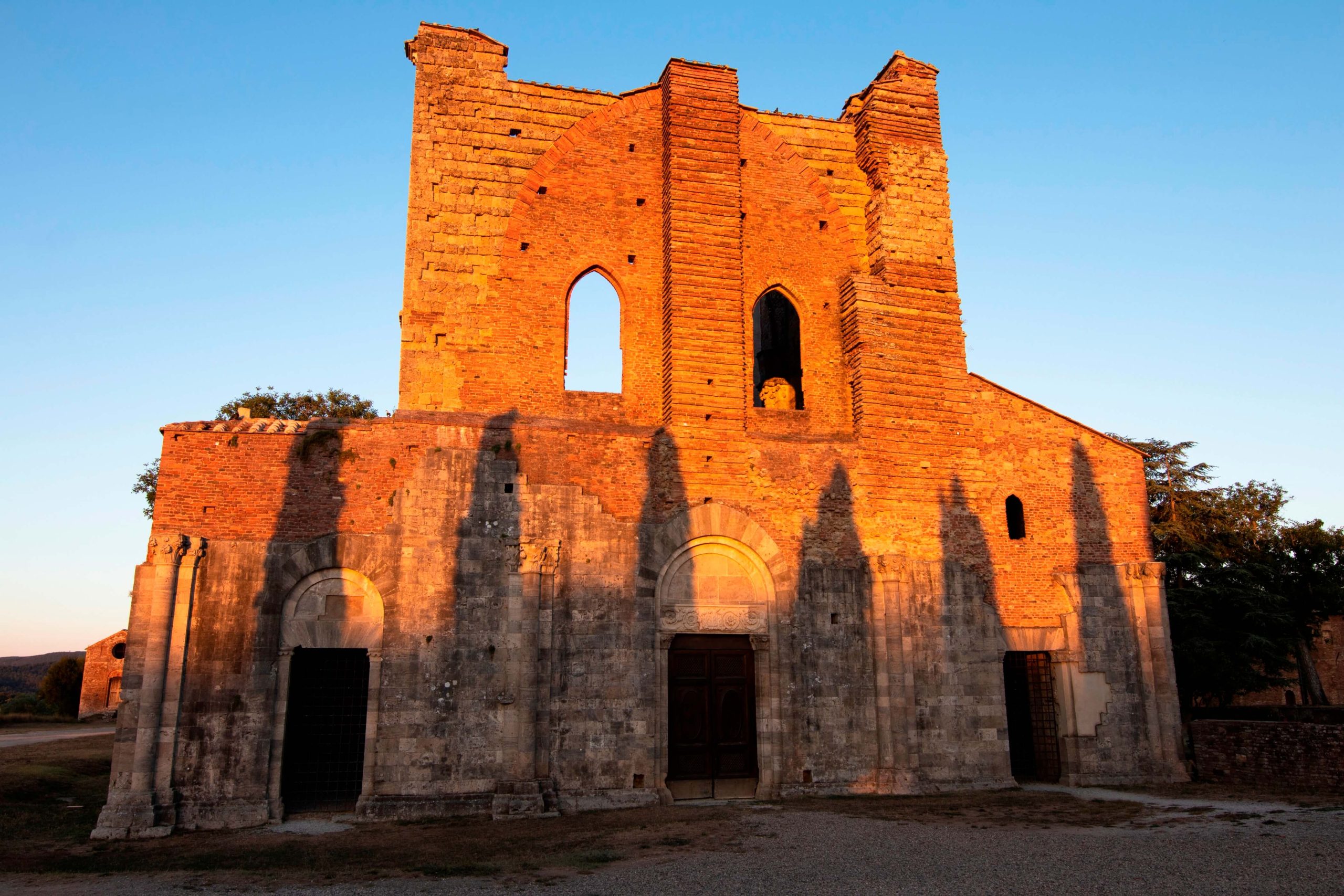 Anche se ormai è rimasto poco della sua fausta bellezza di un tempo, possiamo ancora contemplare la sua maestosità. Giunti sul viale prospiciente la facciata principale, respiriamo l’aria delle Crete Senesi, definite come paesaggi magici e suggestivi, costituiti da una cascina isolata, magari posta in cima ad un colle, il cui viale di accesso è costeggiato da cipressi. In questo caso abbiamo, sì un viale con cipressi, ma ben più di una cascina, un monastero e una cappella con all’interno una spada nella roccia!