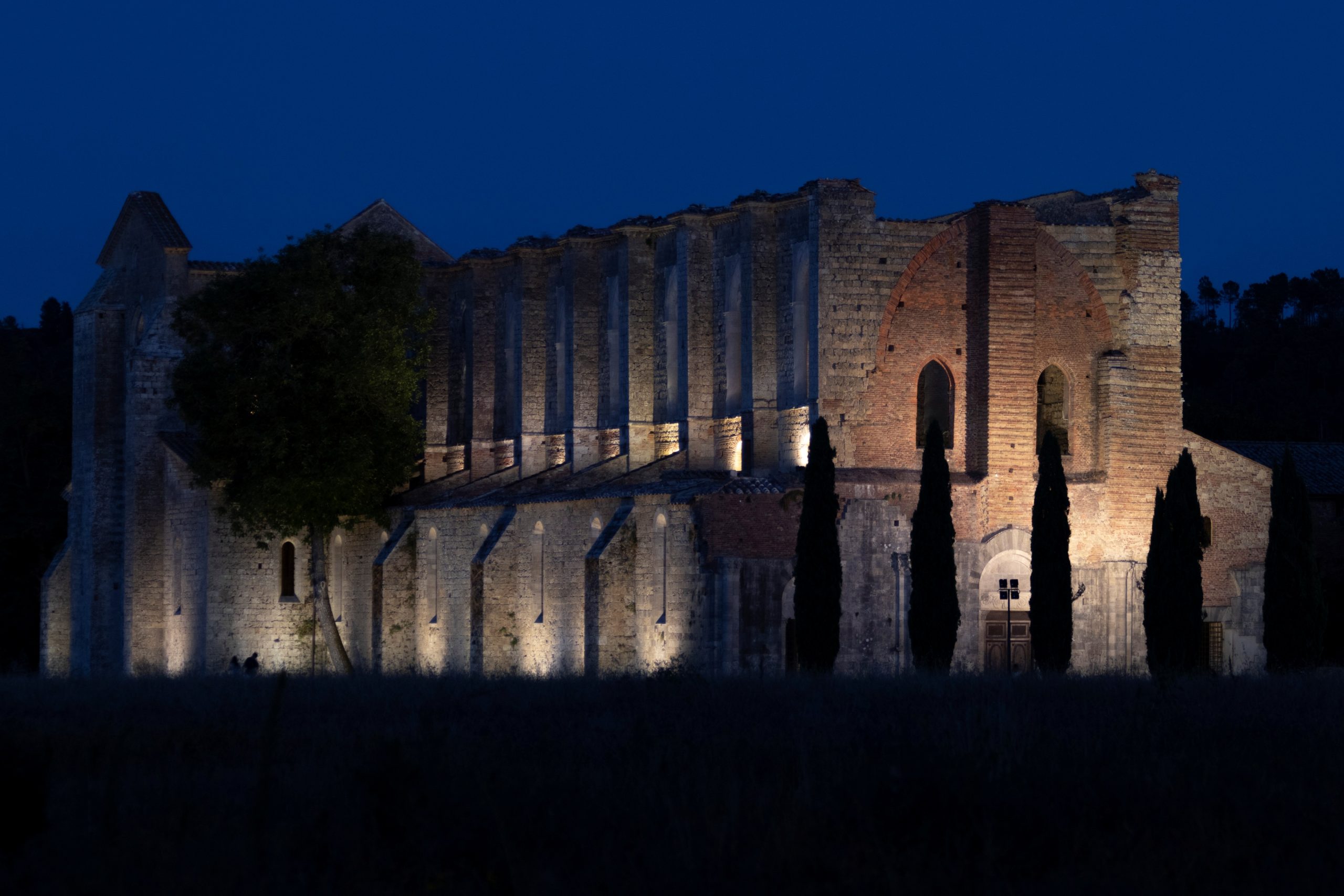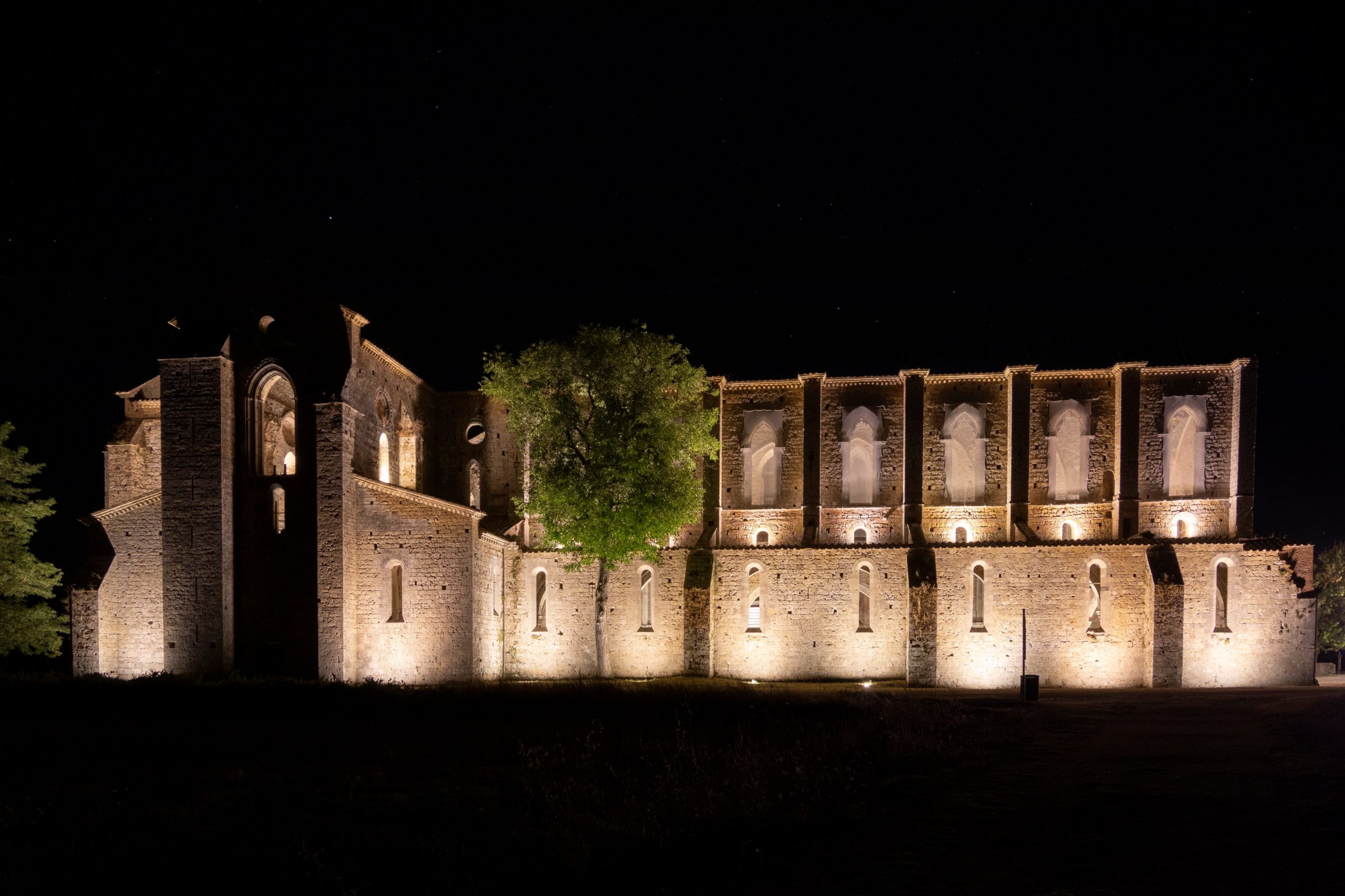 È un peccato che durante la notte le luci artificiali illuminino l’abbazia in ogni angolo. Da un lato la possiamo apprezzare ancor di più, ma dall’altro si crea un grosso inquinamento luminoso che non permette di ammirare un manto stellato, con addirittura la via lattea, ben visibile in questi luoghi.