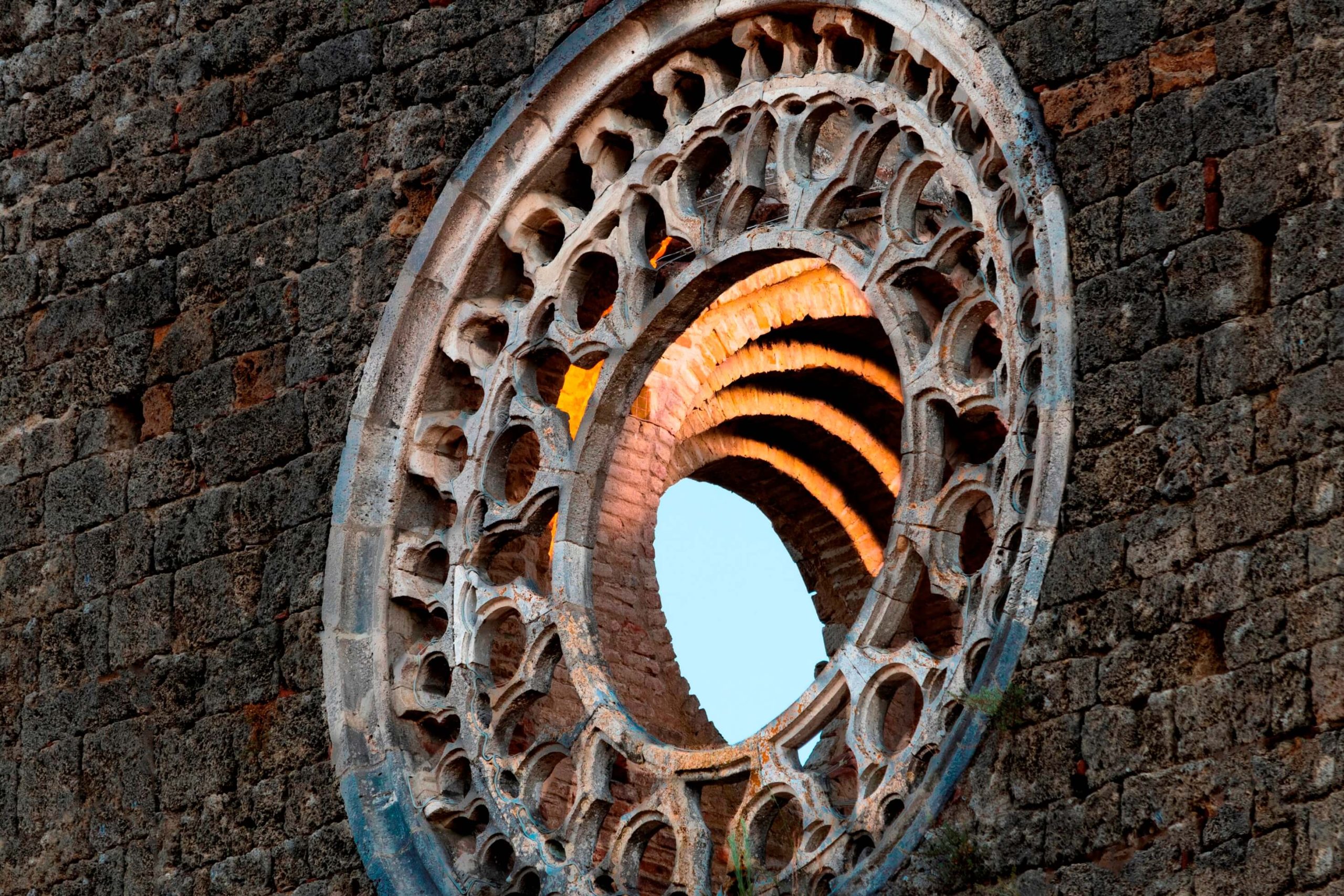 I raggi di sole attraversano le bifore, i rosoni e in base alla posizione in cui ci troviamo, possiamo ammirare dei veri e propri squarci di luce che come un pennello colorano le pareti del vecchio monastero.