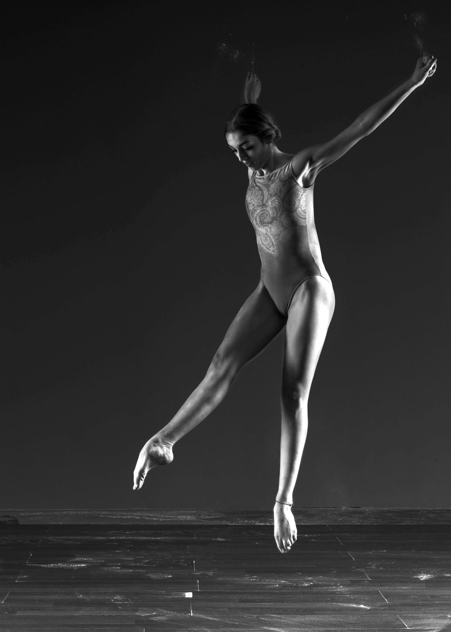 Negli scatti che seguiranno ho cercato, attraverso l’uso delle luci, di esaltare i muscoli tesi creando ombre sulla siluette della ballerina di danza classica e valorizzare ancor di più le azioni della danzatrice.